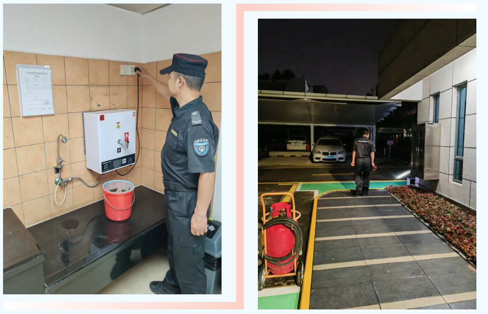 巡逻班长穿梭楼道,手电筒掠过漆黑,巡逻本上记录着凌晨四点资料室墙角渗水现象,凌晨一点南侧门喷淋故障导致天花脱落,凌晨5点 11楼通道施工垃圾未清理,一笔一划都是安全感的具象体现,他们是“24 小时不打烊”的深夜守护者。