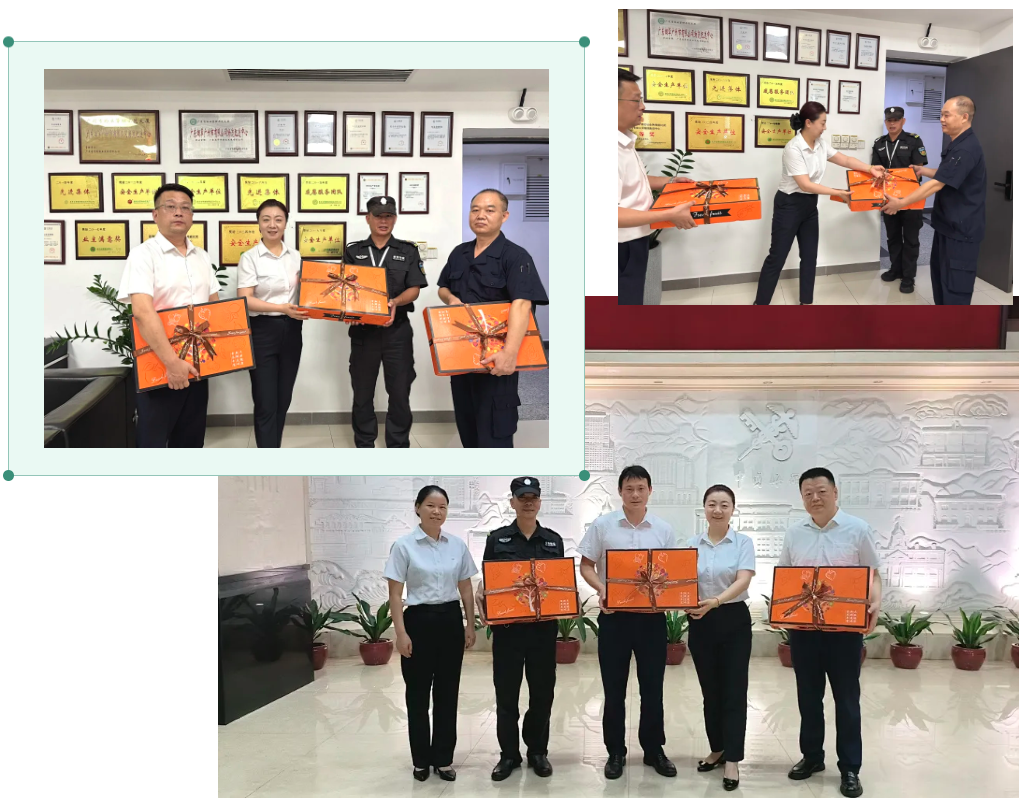 公司执行董事、总经理叶德华及工会委员们奔走于各项目之间为复退军人职工送上慰问礼品,并与他们亲切座谈,感谢他们曾经为国防事业作出的贡献,同时充分肯定他们在物业服务岗位上发扬军人作风,兢兢业业、无私奉献的精神。